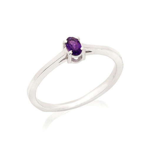 The ring with natural purple amethyst in rhodium-plated silver 925/1000 stands out for its elegant and refined design. The polished finish of the rhodium-plated silver highlights the brilliance of the amethyst, offering a piece of jewelry that catches the eye and seduces customers looking for sophistication and timeless style.