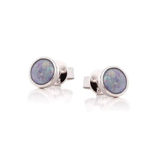 The doublet round blue opal stud earrings in 925/1000 rhodium-plated silver are distinguished by their sophisticated and timeless design. The doublet opal natural stone, of Australian origin, is bezel-set for an impeccable and secure finish. The blue color of the opal, combined with the polished shine of the rhodium-plated silver, offers an elegant contrast that will seduce your most demanding customers.