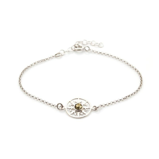 Discover our Sun bracelet with round green amber, designed specifically for professionals in the jewelry sector. This jewel is intended for retailers looking to offer their end customers a unique and elegant piece. Ideal for women, this bracelet combines the natural beauty of Baltic Sea amber with the finesse of 925/1000 rhodium-plated silver.