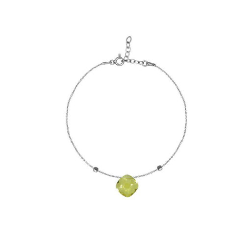 This 925/1000 rhodium-plated silver bracelet, adorned with a cushion-shaped yellow quartz, stands out for its refined design and polished finish. Its adjustable length of 16 to 19 cm and its spring ring clasp ensure a perfect fit for all wrist sizes, offering flexibility appreciated by your customers.