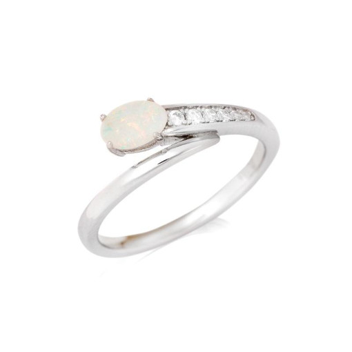 Discover our 925/1000 rhodium-plated silver ring, adorned with an oval opal of Australian origin and set with delicate zirconium oxides. This jewel is specially designed for professionals in the jewelry sector, looking to offer their customers unique and elegant pieces. Intended for a female clientele, this ring stands out for its refined design and polished finish, ideal to complete any jewelry collection.