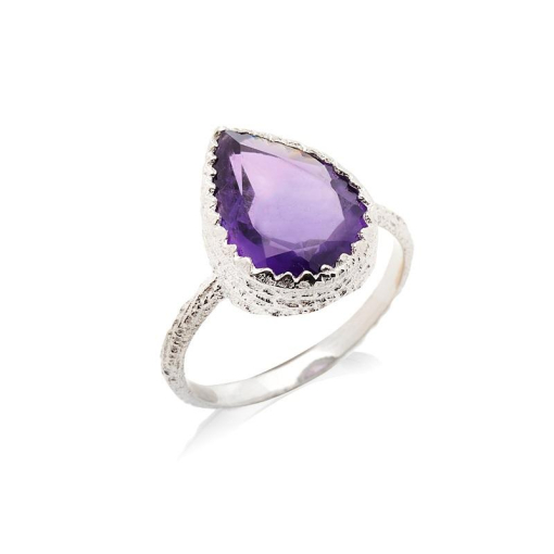 L'améthyste, ornant cette bague en argent rhodié 925/1000, tire son nom du grec amethystos, signifiant ne pas être saoul. Cette pierre naturelle, une variété de quartz, doit sa teinte violette à la présence de fer dans sa composition chimique. Les nuances de l'améthyste varient du rouge au bleu, avec les teintes les plus sombres étant particulièrement recherchées. On trouve des gisements d'améthyste principalement en Afrique, en Inde et en Amérique du Sud. L'améthyste, appartenant à la famille des silicates, a une dureté de 7 sur l'échelle de Mohs et une densité de 2,65. Bien que la couleur de l'améthyste puisse être modifiée par chauffage, les spécimens naturels non traités, comme celui de cette bague avec améthyste violette naturelle, sont les plus valorisés.