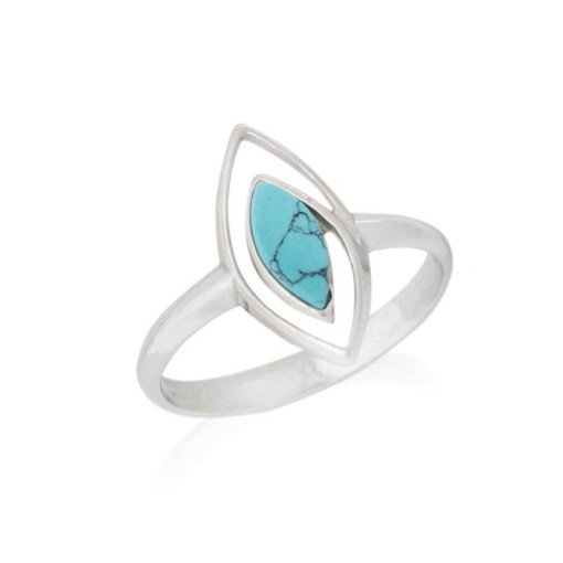 Cette bague en argent rhodié 925/1000 se distingue par son design élégant et raffiné, mettant en valeur une turquoise naturelle reconstituée d'un bleu éclatant. Son allure sophistiquée et intemporelle en fait un choix idéal pour les clientes recherchant une pièce à la fois moderne et classique.
