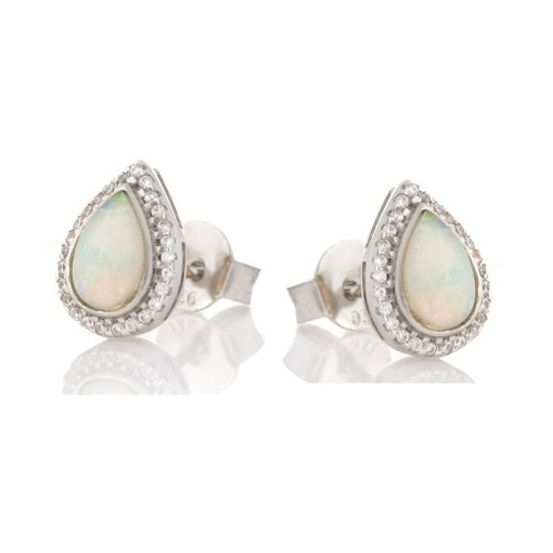 Ces boucles d'oreilles en argent rhodié 925/1000 se distinguent par leur design sophistiqué, mettant en valeur une opale en forme de goutte d'origine australienne, accompagnée d'oxydes de zirconium étincelants. La finition polie de l'argent ajoute une touche de brillance, faisant de ces boucles d'oreilles un choix idéal pour les clientes recherchant une élégance intemporelle.