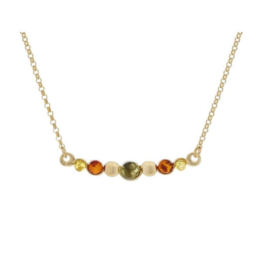 Ce collier en argent doré 925/1000, orné d'ambre de la Mer Baltique, se distingue par son design raffiné et sa finition polie. La longueur ajustable de 42 à 46 cm permet une adaptation parfaite à différentes tenues et occasions, offrant ainsi une grande flexibilité à vos clients finaux.