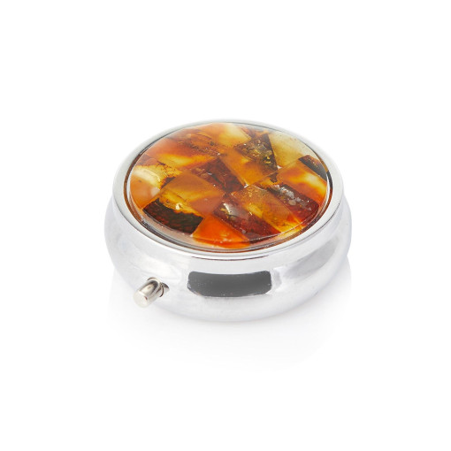 Ce pilulier rond en métal et ambre de 6x2.5 cm allie esthétique et praticité. Son design raffiné, mettant en valeur l'ambre de la Mer Baltique, attire l'œil et ajoute une touche de sophistication à tout assortiment de produits. Idéal pour les clients recherchant des accessoires à la fois beaux et utiles.